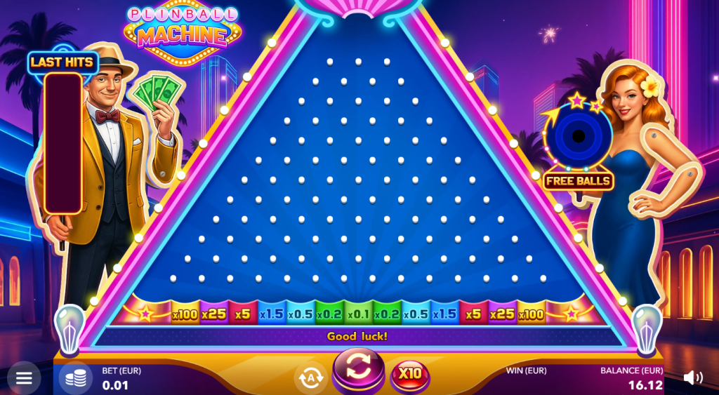 Plinball Machine funkcioniše po jednostavnom principu – loptice se spuštaju niz mrežu čavlića i završavaju u jednoj od nagradnih zona na dnu ekrana. Svaka zona donosi različite multiplikatore, pa tako možete osvojiti do x100 u jednom potezu.