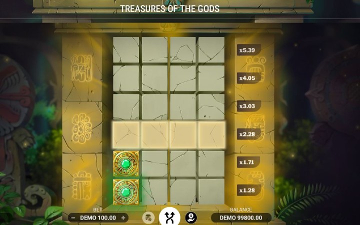 Treasures of the Gods je online igra koja ima četiri kolone koje su smještene u šest redova. Svaki uspješan korak koji napravite će povećati množitelj dobitka, dok će svaki novi donijeti veće dobitke.