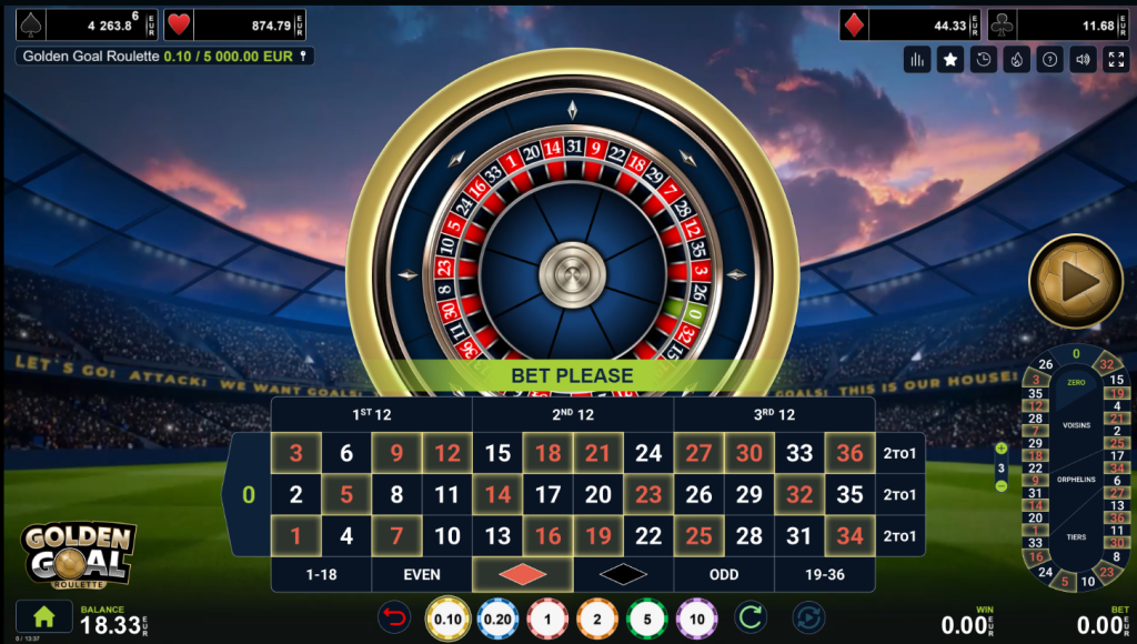 Ova igra predstavlja savršen spoj klasičnog evropskog ruleta i moderne sportske tematike, sa posebnim akcentom na fudbal. Idealna je kako za iskusne igrače ruleta, tako i za sportske fanatike koji žele dodatnu zabavu i dinamiku.