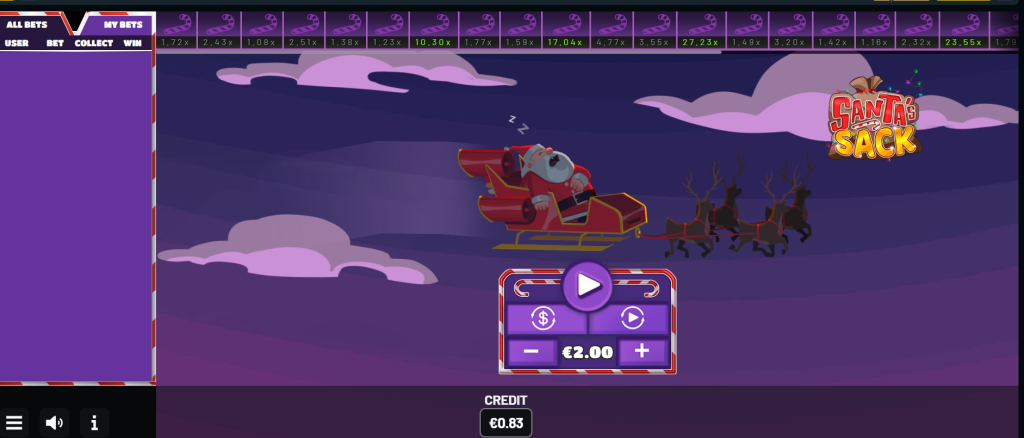 Santa’s Sack je popularna kazino crash igra u prazničnom ruhu, koju potpisuje renomirani provajder Oryx Gaming.