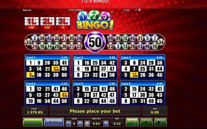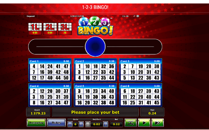 1-2-3 Bingo je jedna od igara koja spada u klasične online bingo igre. U bubnju se nalazi 50 brojeva, a iz njega se izvlači 30 brojeva u svakom kolu.