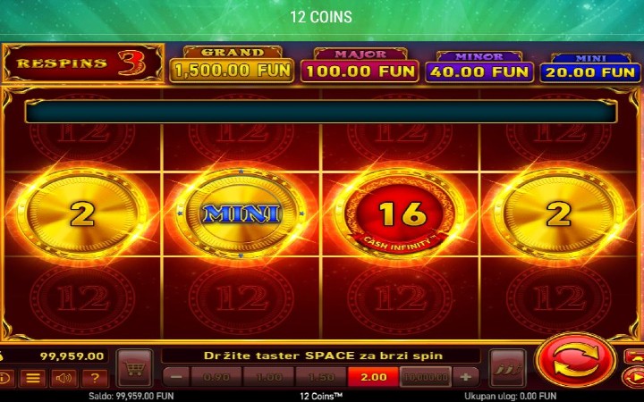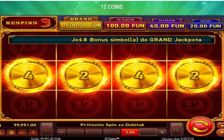 Igra 12 Coins posjeduje i demo verziju što vam omogućava da je isprobate potpuno besplatno na svom izabranom online kazinu.