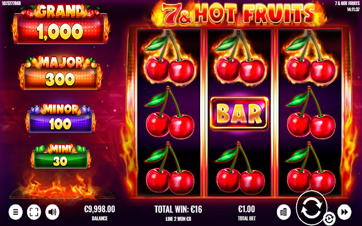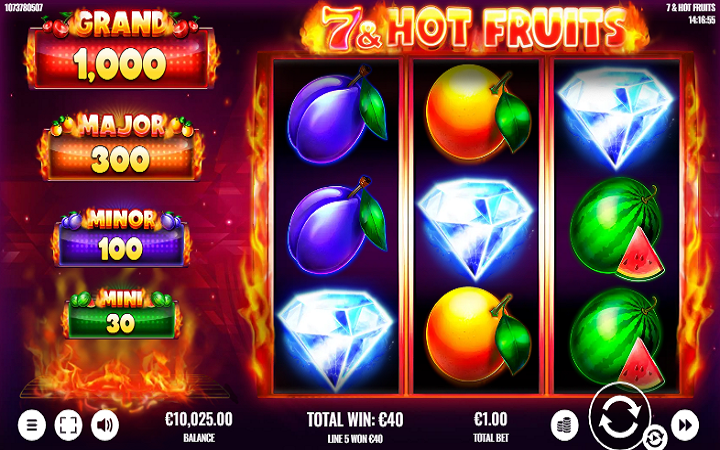 7 and Hot Fruits je online slot koji ima tri kolone smještene u tri reda i ima pet fiksnih isplatnih linija. Da biste ostvarili bilo kakav dobitak potrebno je spojiti tri ili više odgovarajućih simbola na isplatnoj liniji. Ujedno, to je i jedina moguća dobitna kombinacija.