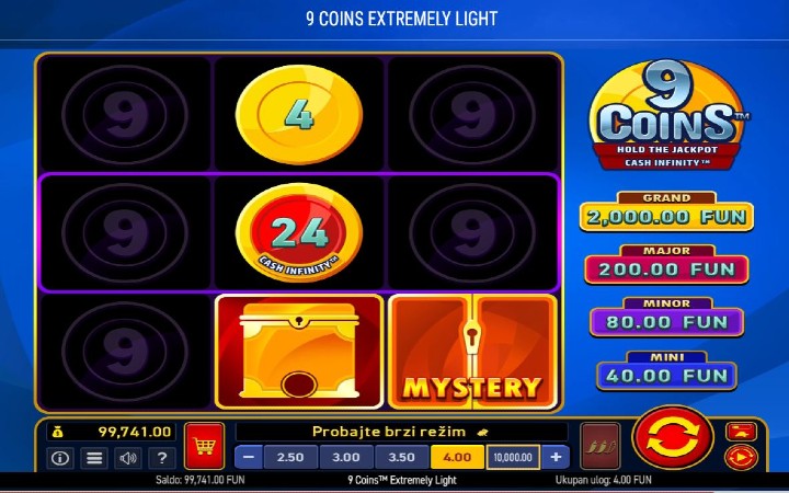 Igra 9 Coins Extremely Light posjeduje i demo verziju što vam omogućava da je isprobate potpuno besplatno na online kazinu.