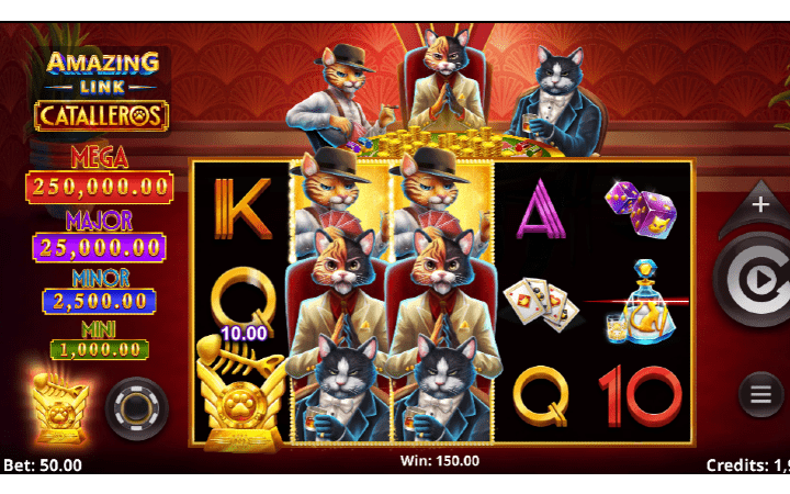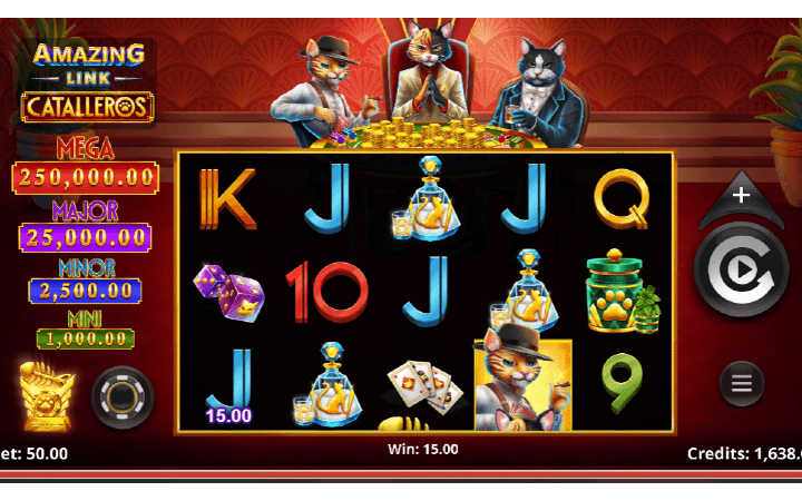 U igri Amazing Link Catalleros će vas dočekati tri obučene mafijaške mačke, koje sjede oko svog stola za poker i neprestano vas posmatraju.