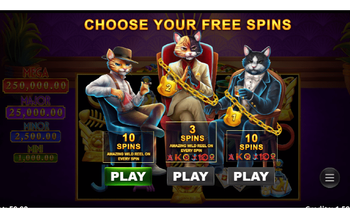 Mačka u odijelu dodjeljuje 10 besplatnih spinova. Tokom ove funkcije kartaški znaci se uklanjaju sa kolona.