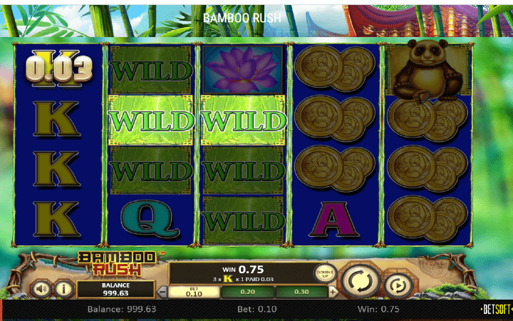 Pored toga, slot Bamboo Rush posjeduje i bonus igru kockanja koja se može aktivirati poslije bilo koje dobitne kombinacije kada vam se na ekranu pokaže taster Double Up.