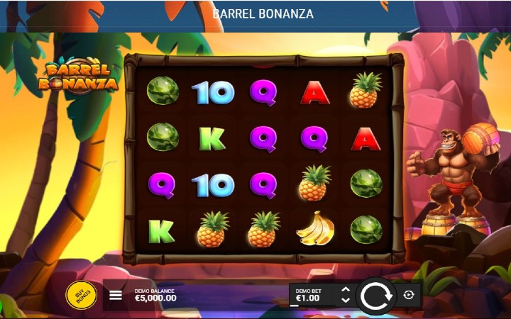 Kolone slota Barrel Bonanza su smještena između stijena i palmi. Desno od kolona ćete vidjeti majmuna koji drži bure. Simpatična muzika je prisutna sve vrijeme dok se zabavljate.