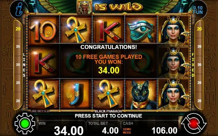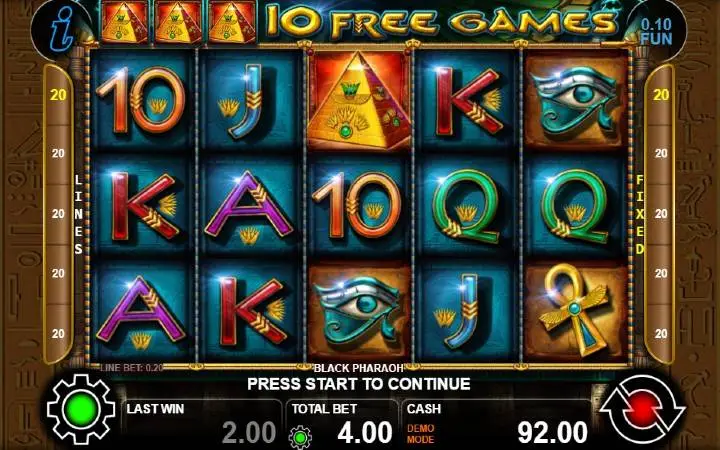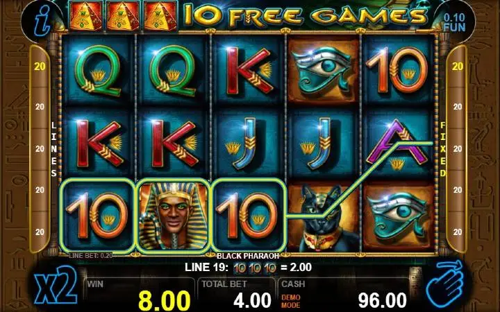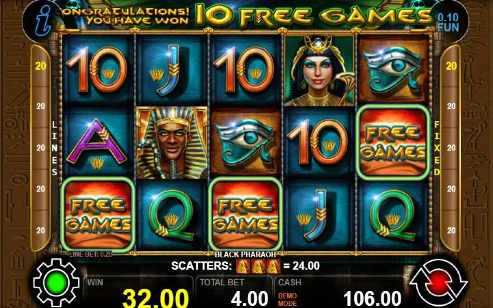 Black Pharaoh je video slot koji ima pet kolona smještenih u tri reda i ima 20 fiksnih isplatnih linija. Da biste ostvarili bilo kakav dobitak potrebno je spojiti tri ili više podudarajućih simbola na isplatnoj liniji.