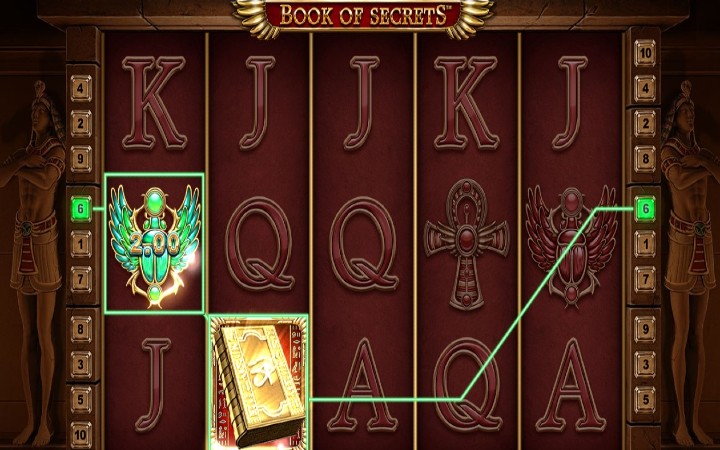 Slot Book of Secrets koristi konvencionalnu strukturu igranja sa 5 kolona i 3 reda. Međutim, igrači imaju samo 10 linija za pobjedu na kojima mogu da igraju, šarenih obrisa sa obije strane mreže.
