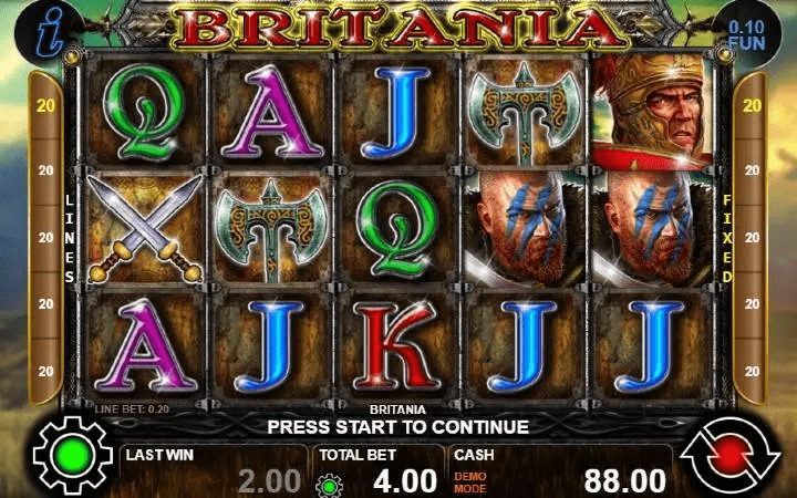 Britania je video slot koji ima pet kolona smještenih u tri reda i ima 20 fiksnih isplatnih linija. Da biste ostvarili bilo kakav dobitak potrebno je da spojite minimum tri ili više podudarajućih simbola na isplatnoj liniji.