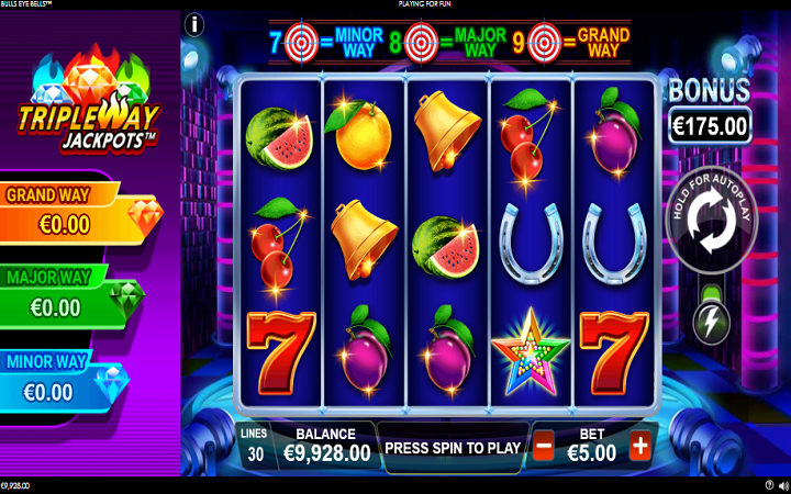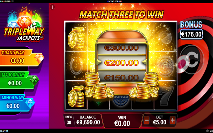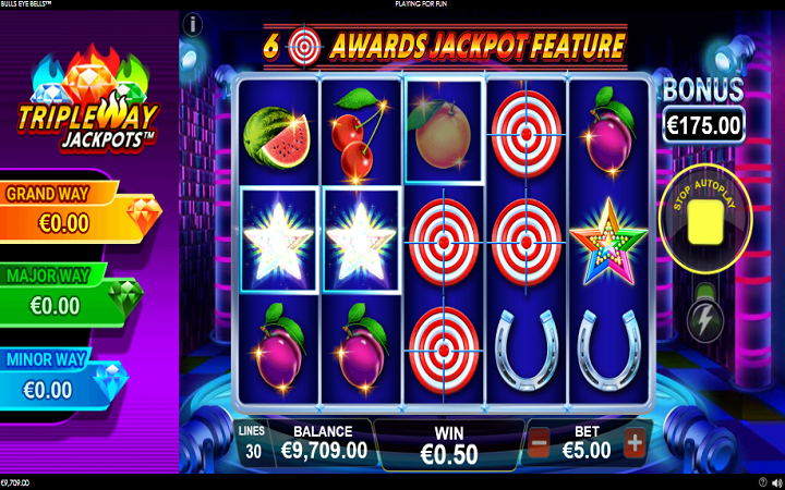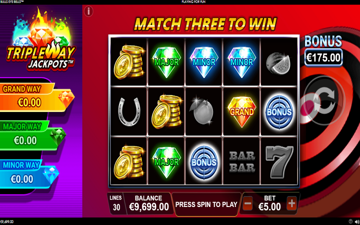 Bulls Eye Bells je online slot koji ima pet kolona smještenih u tri reda i ima 30 fiksnih isplatnih linija. Da biste ostvarili bilo kakav dobitak potrebno je spojiti tri ili više odgovarajuća simbola na isplatnoj liniji.