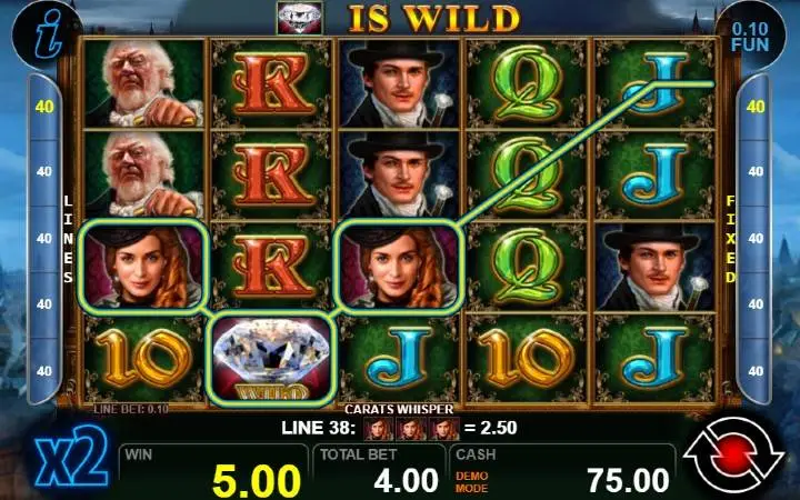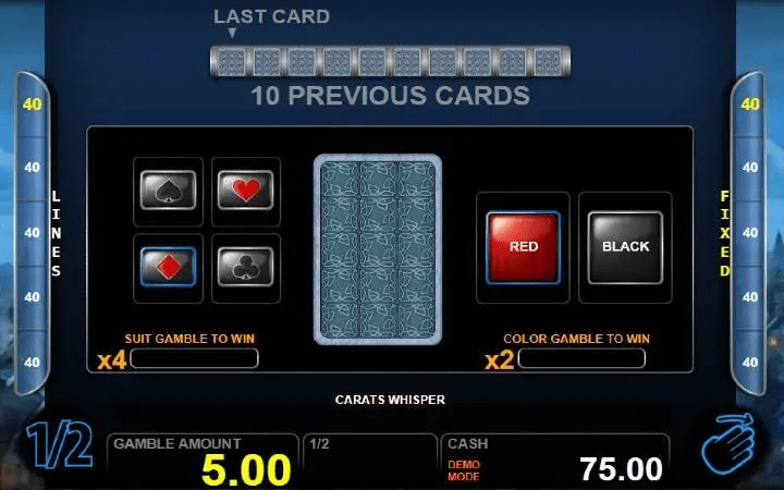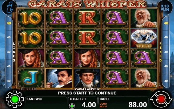 Carats Whisper je video slot koji ima pet kolona smještenih u četiri reda i ima 40 fiksnih isplatnih linija. Da biste ostvarili bilo kakav dobitak potrebno je spojiti tri ili više podudarajućih simbola na isplatnoj liniji.
