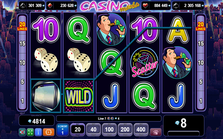 Slot Casino Mania dolazi sa pet kolona koje su smještene u tri standarda reda, dok je broj isplatnih linija ovog puta 20. Isplatne linije u ovom slotu nisu fiksne, što znači da ćete imati mogućnost da mijenjate broj isplatnih linija onako kako vam bude odgovaralo u toku igranja. Broj isplatnih linija je solidan, pa smo sigurni i da ostanete na 20 isplatnih linija, zabava i dobici će biti zagarantovani.