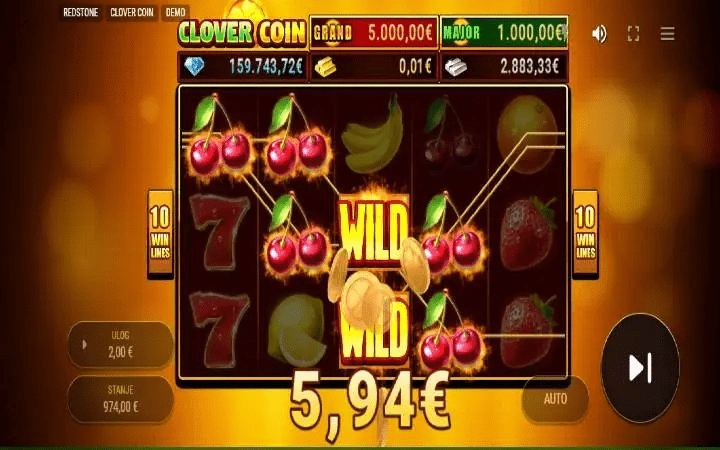 Clover Coin je online slot koji ima pet kolona smještenih u tri reda i ima 10 fiksnih isplatnih linija. Da biste ostvarili bilo kakav dobitak potrebno je spojiti tri ili više podudarajućih simbola na isplatnoj liniji.