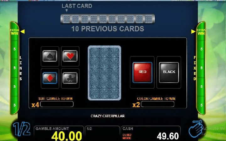 Slot Crazy Caterpillar posjeduje i bonus igru kockanja u koju ulazite na taster X2 na komandnoj tabli. Da biste igrali igru kockanja potrebno je da ostvarite dobitak.