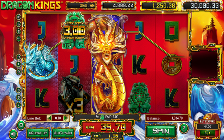 Dragon Kings je video slot koji ima pet kolona smještenih u tri reda i ima 10 fiksnih isplatnih linija. Da biste ostvarili bilo kakav dobitak potrebno je spojiti tri ili više odgovarajućih simbola na isplatnoj liniji.