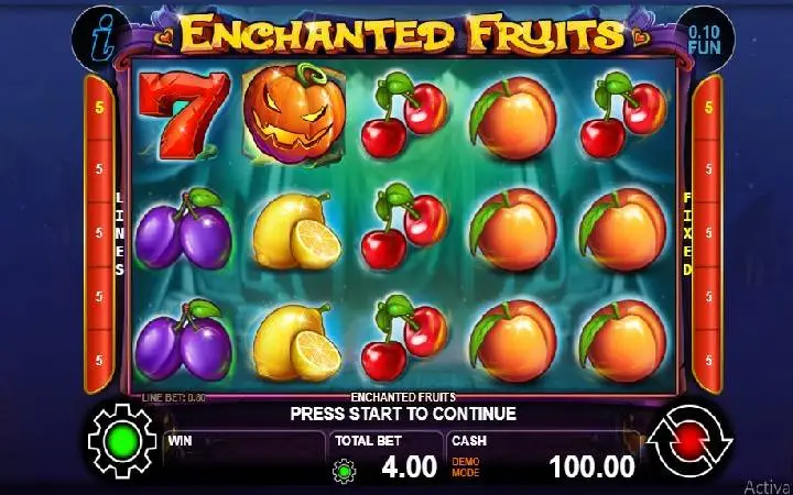 Postavka slota Enchanted Fruits je na pet kolona u tri reda simbola i 5 isplatnih linija. Ova kazino igra inspirisana je praznikom Halloween i vaš zadatak je da se opustite i uživate u proslavi Noći vještica, dok vrtite kolone slota.