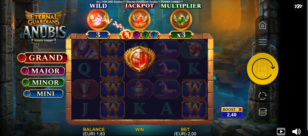 Eternal Guardians: Anubis Power Combo je video slot koji se igra na klasičnoj mreži sa 5 kolona i 4 reda, uz veliki broj dobitnih linija.
