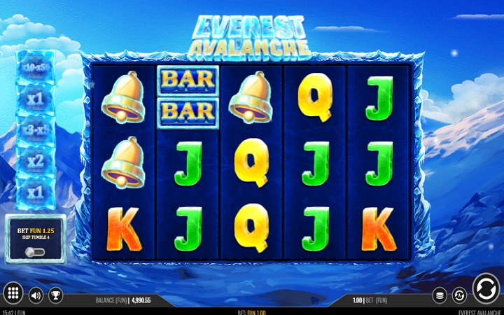 Everest Avalanche je online slot koji ima pet kolona raspoređenih u tri reda i 20 fiksnih isplatnih linija. Da biste ostvarili bilo kakav dobitak, potrebno je spojiti tri ili više istih simbola na isplatnoj liniji.