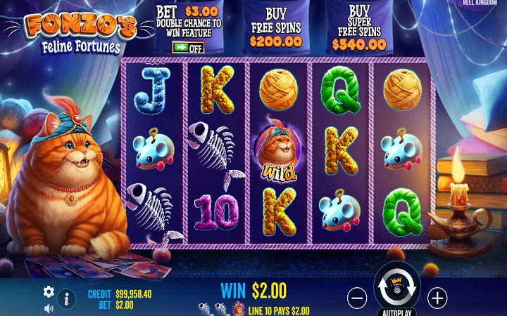Fonzos Feline Fortunes je video slot sa pet kolona smještenih u tri reda i 10 fiksnih isplatnih linija. Da biste ostvarili dobitak, potrebno je spojiti tri ili više odgovarajućih simbola na isplatnoj liniji.