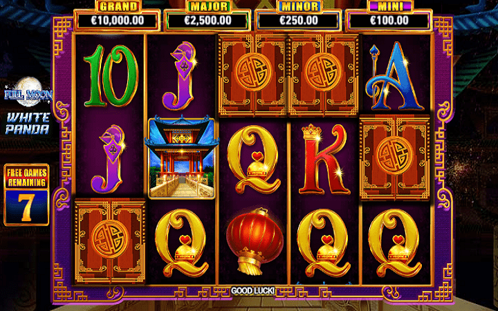 Dok je najisplatljiviji simbol slota Full Moon White Panda kineski dvorac. Pet spojenih simbola na kolonama slota omogućava da ostvarite dobitke i do 30 pta veće od vašeg uloga.