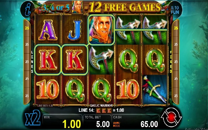 Da biste ostvarili dobitak u slotu Gaelic Warrior potrebno je da imate tri ili više podudarajućih simbola sa lijeve na desnu stranu, krenuvši od prve kolone sa lijeve strane.