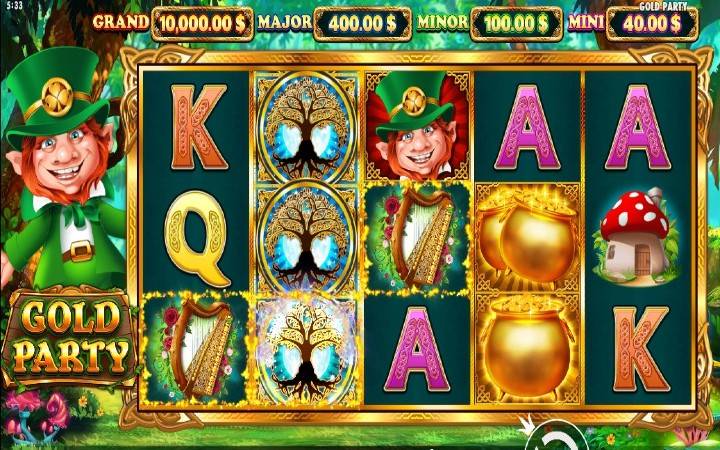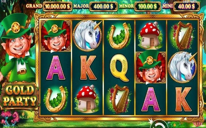 Ovaj Leprekon nas zaista poziva na divno mgesto, gdje je bujna priroda pomiješana sa vrijednim zlatnim predmetima, koji su dostupni da se pokupe. Gold Party je slot koji tokom okretanja osnovne igre ima manju postavku koluta od 5×3. Ovdje možete učestvovati u divnoj mješavini simbola povezanih sa srećom, gdje takođe možemo da sletimo džoker simbole.