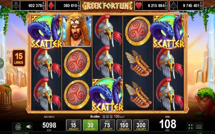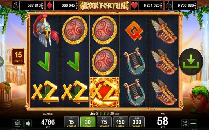 Greek Fortune je video slot koji ima pet kolona smještenih u tri reda i ima 15 fiksnih isplatnih linija. Da biste ostvarili bilo kakav dobitak potrebno je spojiti tri ili više podudarajućih simbola na isplatnoj liniji.
