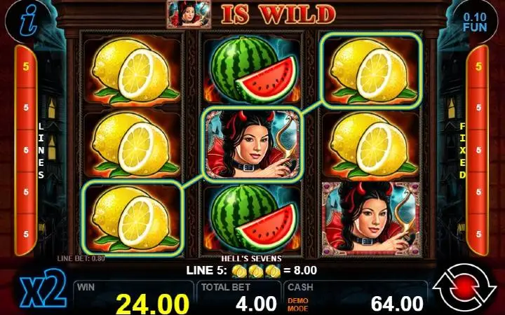 Hells Sevens je klasičan slot koji ima tri kolone smještene u tri reda i ima pet fiksnih isplatnih linija. Da biste ostvarili bilo kakav dobitak potrebno je spojiti tri podudarajuća simbola na isplatnoj liniji.