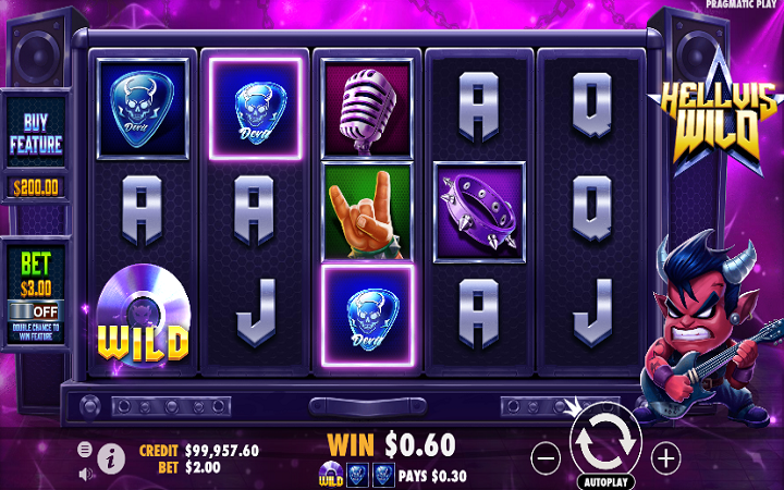 Sa ponosom predstavljamo Hellvis Wild video slot od provajdera Pragmatic Play. Ova online kazino igra posjeduje moćne bonuse u skladu sa samom tematikom. Uživaćete u respinovima i besplatnim spinovima, a maksimalna isplata je 5.000 puta veća od uloga.