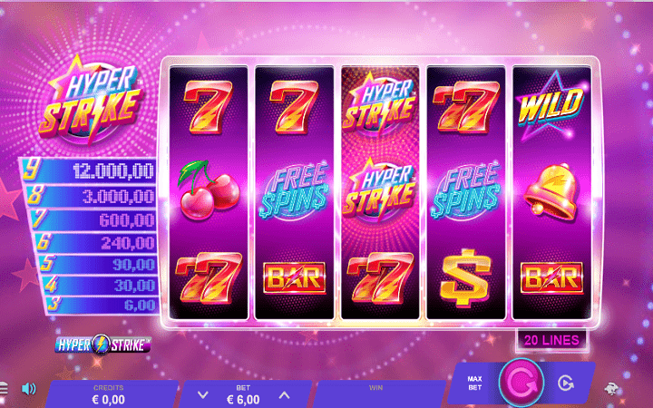 Online kazino igra Hyper Strike dolazi sa 3 reda, 5 kolona i 20 isplatnih linija, isplatne linije su fiksne samim tim igrači nemaju mogućnost da ih mijenjaju. Kad su u pitanju simboli koji se mogu pojaviti na isplatnim linijama, pojedini od njih donose igračima baš velike isplate. Možete pokrenuti funkciju besplatnih spinova, kao i razne ostale funkcije kao što u kompletu sa multiplikatorima udvostručuju, ili učetvostručuju nagrade koje ste osvojili.