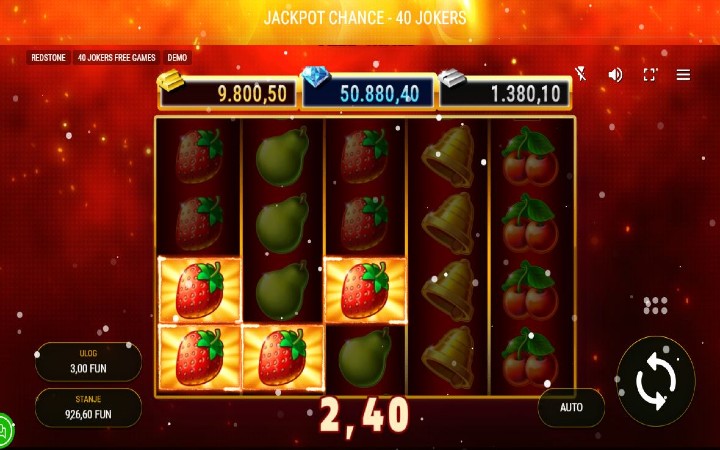 Jackpot Chance 40 Jokers je online slot koji je kreirao provajder Redstone. U ovoj online kazino igri osim džoker i scatter simbola očekuju vas i besplatni spinovi. Posebno će vas obradovati džekpotovi.