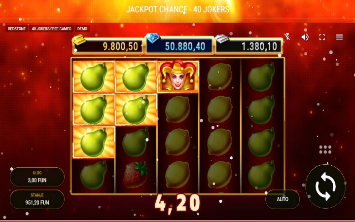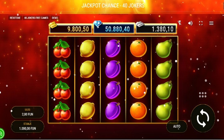 Igra Jackpot Chance 40 Jokers ima demo verziju što vam omogućava da je isprobate besplatno, prije ulaganja stvarnog novca.
