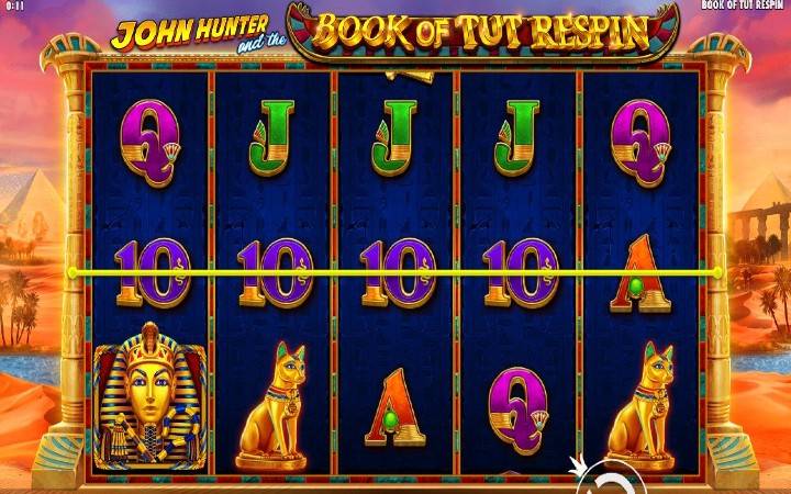 John Hunter and the Book of Tut Respin je video slot sa 5 kolona, 3 reda i 10 isplatnih linija. Sve dobitne kombinacije se računaju sa lijeve na desnu stranu, počevši od prve lijeve kolone.