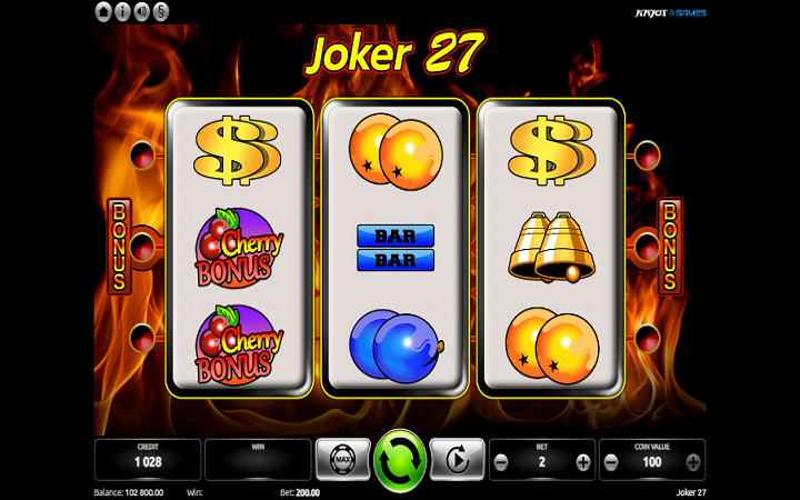 Joker 27 je online slot koji ima tri kolone smještene u tri reda i ima 27 dobitnih kombinacija. Da biste ostvarili bilo kakav dobitak potrebno je spojiti tri simbola u dobitnom nizu. Ujedno, to je i jedina moguća dobitna kombinacija.