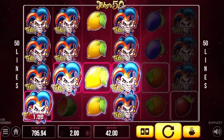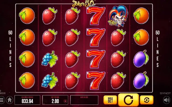 Joker 50 Deluxe je online slot koji ima šest kolona smještenih u četiri reda i ima 50 fiksnih isplatnih linija. Da biste ostvarili bilo kakav dobitak potrebno je spojiti tri ili više podudarajućih simbola na isplatnoj liniji.