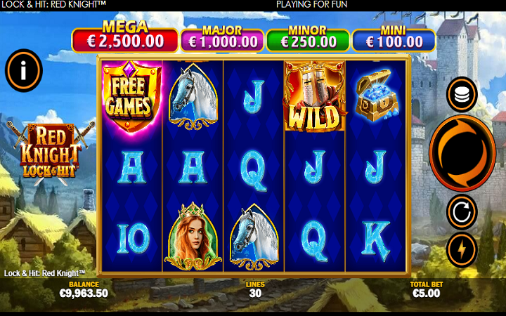 Lock and Hit Red Knight je online slot koji ima pet kolona smještenih u tri reda i ima 30 fiksnih isplatnih linija. Da biste ostvarili bilo kakav dobitak potrebno je spojiti tri ili više odgovarajuća simbola na isplatnoj liniji.