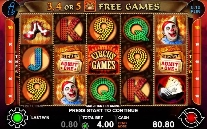 Simbol sa slikom ulaznice za cirkus i simbol klovnovih cipela donose identičnu isplatnu moć. Pet ovih simbola u dobitnom nizu će vam donijeti 25 puta više od uloga.