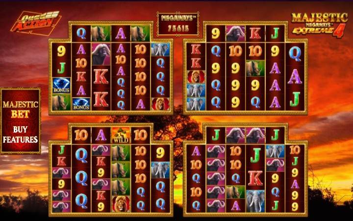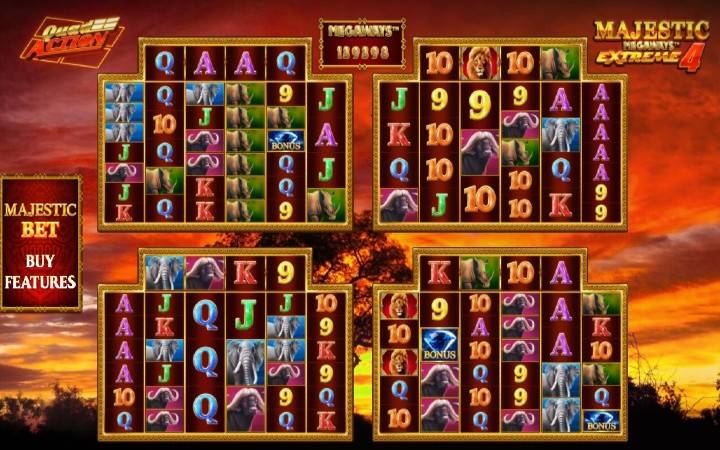 Provajder je u slotu Majestic Megaways Extreme 4 ubacio neke impresivne mehanike, uključujući do 470.596 načina za pobjedu, četiri sjajna bonus dodatka i jedinstvenu funkciju u kojoj igrate 4 slota odjednom.