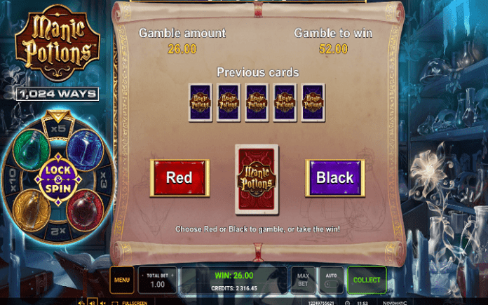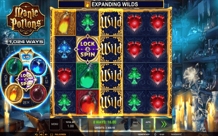 Manic Potions je video slot koji ima pet kolona smještenih u četiri reda i ima 1.024 dobitne kombinacije. Da biste ostvarili bilo kakav dobitak potrebno je povezati tri ili više podudarajuća simbola u dobitnom nizu.