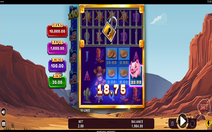 Marshall Money je online slot koji ima pet kolona smještenih u tri reda i ima 10 isplatnih linija. Da bi ostvario bilo kakav dobitak, potrebno je spojiti tri ili više odgovarajuća simbola na isplatnoj liniji.