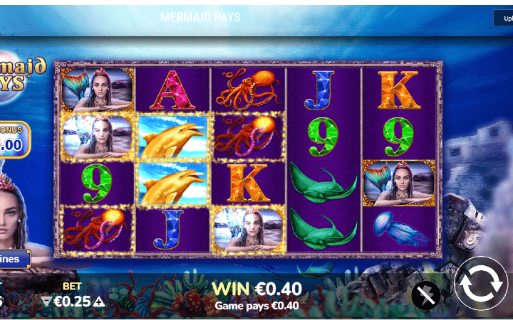 Mermaid Pays je online slot koji ima pet kolona smještenih u četiri reda i ima 50 fiksnih isplatnih linija. Da biste ostvarili bilo kakav dobitak potrebno je spojiti tri ili više podudarajućih simbola na isplatnoj liniji.