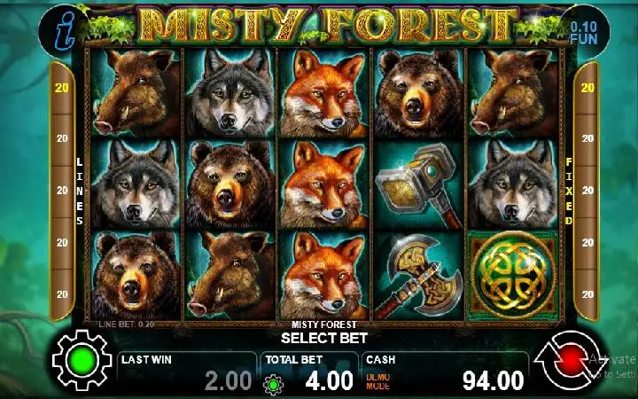 Simboli na kolonama slota Misty Forest su sastavljeni od šumskih bića kao što su vukovi, lisice i medvjedi. Ostali simboli uključuju ratne sjekire i čekiće. Od simbola ćete još ugledati i keltskog vojnika i lijepu mladu djevojku.