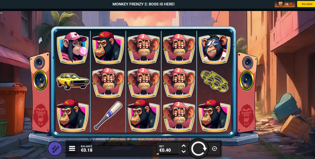 Smješten u gradsko okruženje inspirisano “street” kulturom, ovaj slot odmah privlači pažnju svojim karakterističnim likovima i živopisnim dizajnom. Uz napredne funkcije i zanimljiv gameplay, Monkey Frenzy 2 nudi iskustvo koje se izdvaja od klasičnih slot igara.