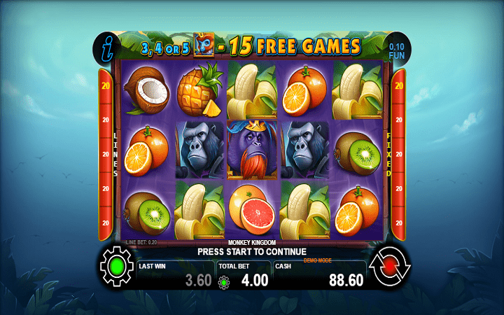 Monkey Kingdom je online slot koji ima pet kolona smještenih u tri reda i ima 20 fiksnih isplatnih linija. Da biste ostvarili bilo kakav dobitak potrebno je spojiti barem dva ili tri odgovarajuća simbola na isplatnoj liniji.