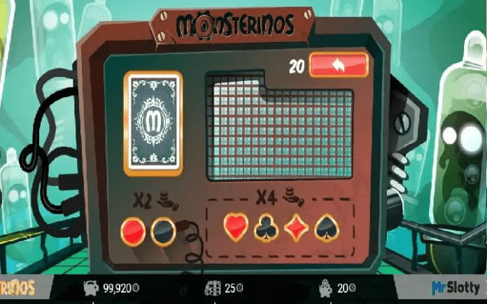 U slotu Monsterinos imate šansu da udvostručite vaše dobitke, a to je uz pomoć mini bonus igre kockanja. U bonus igru kockanja možete ući posle bilo koje dobitne kombinacije i kockati vaš trenuti dobitak.
