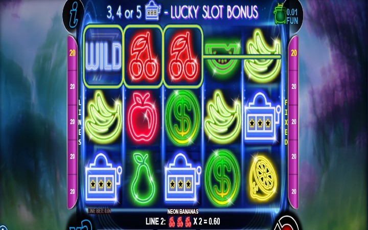 Neon Banas je slot sa 5 kolona, 3 reda i 20 isplatnih linija. Sve dobitne kombinacije se računaju sa lijeve na desnu stranu, počevši od prve kolone sa lijeve strane.
