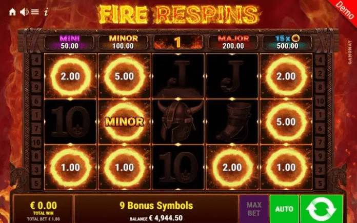 Kada se pet ovih simbola pojavi na kolonama aktiviraće se Fire Respins Bonus. Nakon toga regularni simboli nestaju sa kolona. Vi dobijate tri respina da spustite neki od ovih simbola na kolone.