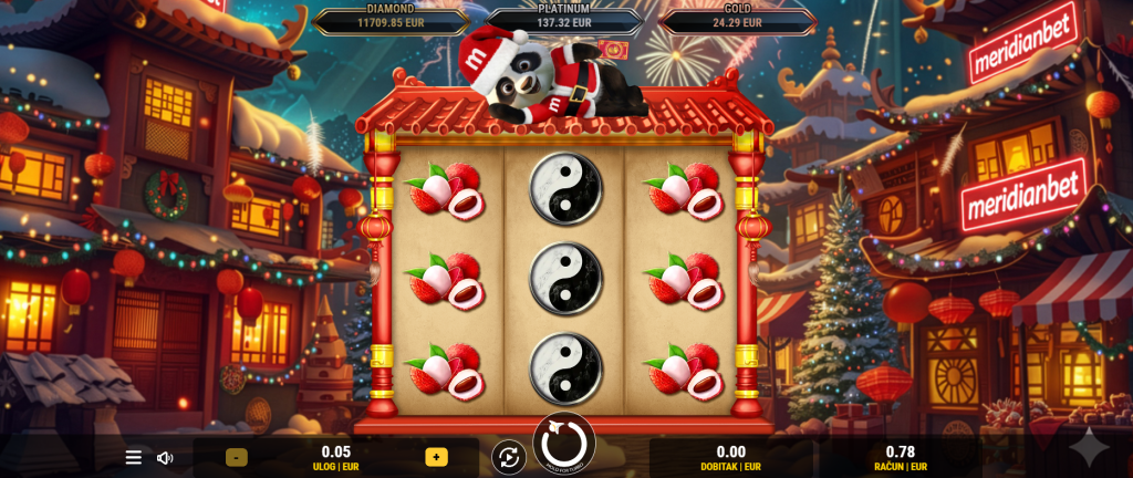 Panda Meridian Deluxe od provajdera Exanse predstavlja savršen spoj azijske simbolike, praznične čarolije i klasičnog slot koncepta.